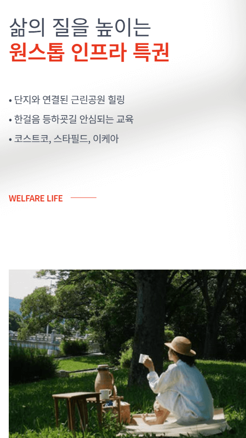 - 피트니스센터, 작은도서관, 어린이집, 어린이케어센터 등 다양한 커뮤니티 시설 구축